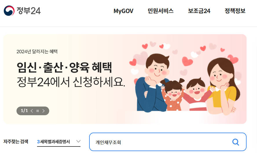 정부 24에서 개인 채무정보 서비스를 이용하면 대출기관, 대출잔액, 잔여이자, 대출일자, 보증인유무 등을 조회할 수 있습니다. 한국자산관리공사, 국민행복기금, 희망모아유동화전문, 한마음금융에서 매입하여 관리하고 있는 채권에 대한 정보만 확인 가능합니다. 아래버튼에서 개인 채무정보를 바로 확인하실 수 있습니다.