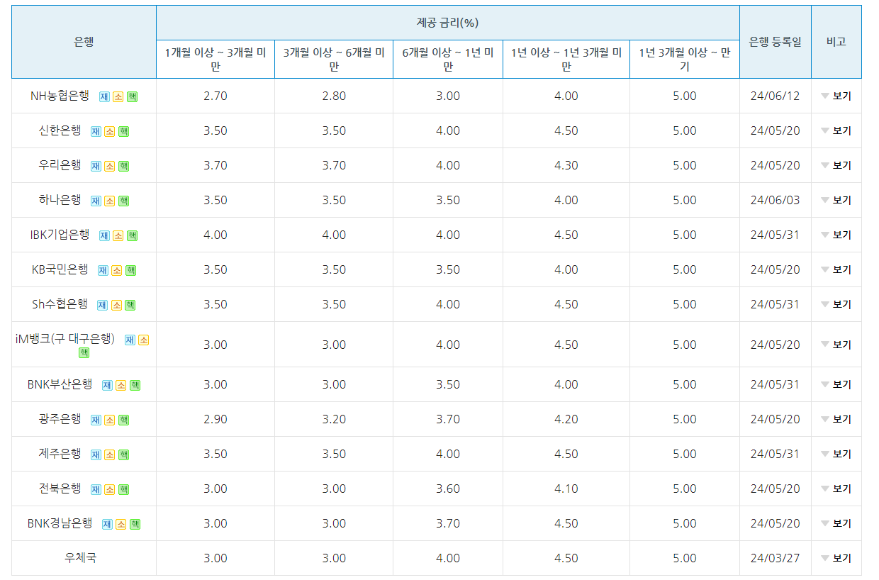 아래버튼에서 은행별 금리를 한눈에 비교해 볼 수 있습니다.