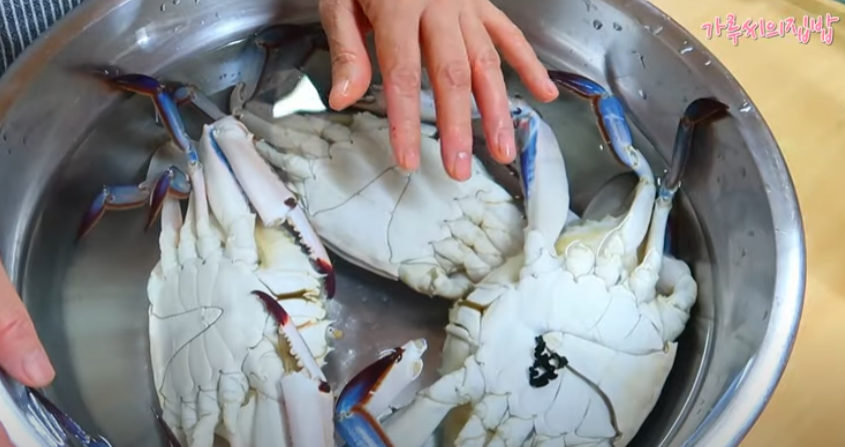 1. 먼저 신선한 살아있는 꽃게 3마리(1.5kg)를 큰 그릇에 넉넉한 물에 담아주세요.