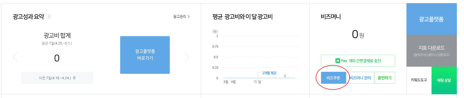 2. 검색광고 메인에서 [비즈머니 > 비즈쿠폰 ]