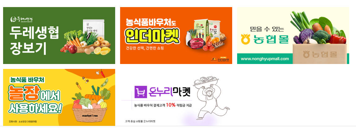 농식품바우처를 온라인으로 편하게 사용해보세요. 사용처는 농협몰, 인더마켓, 온누리마켓, 두레생협, 놀장 입니다.