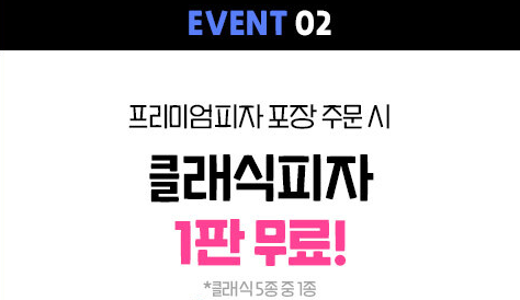 프리미엄피자 주문 시 클래식 피자 1판이 무료입니다.